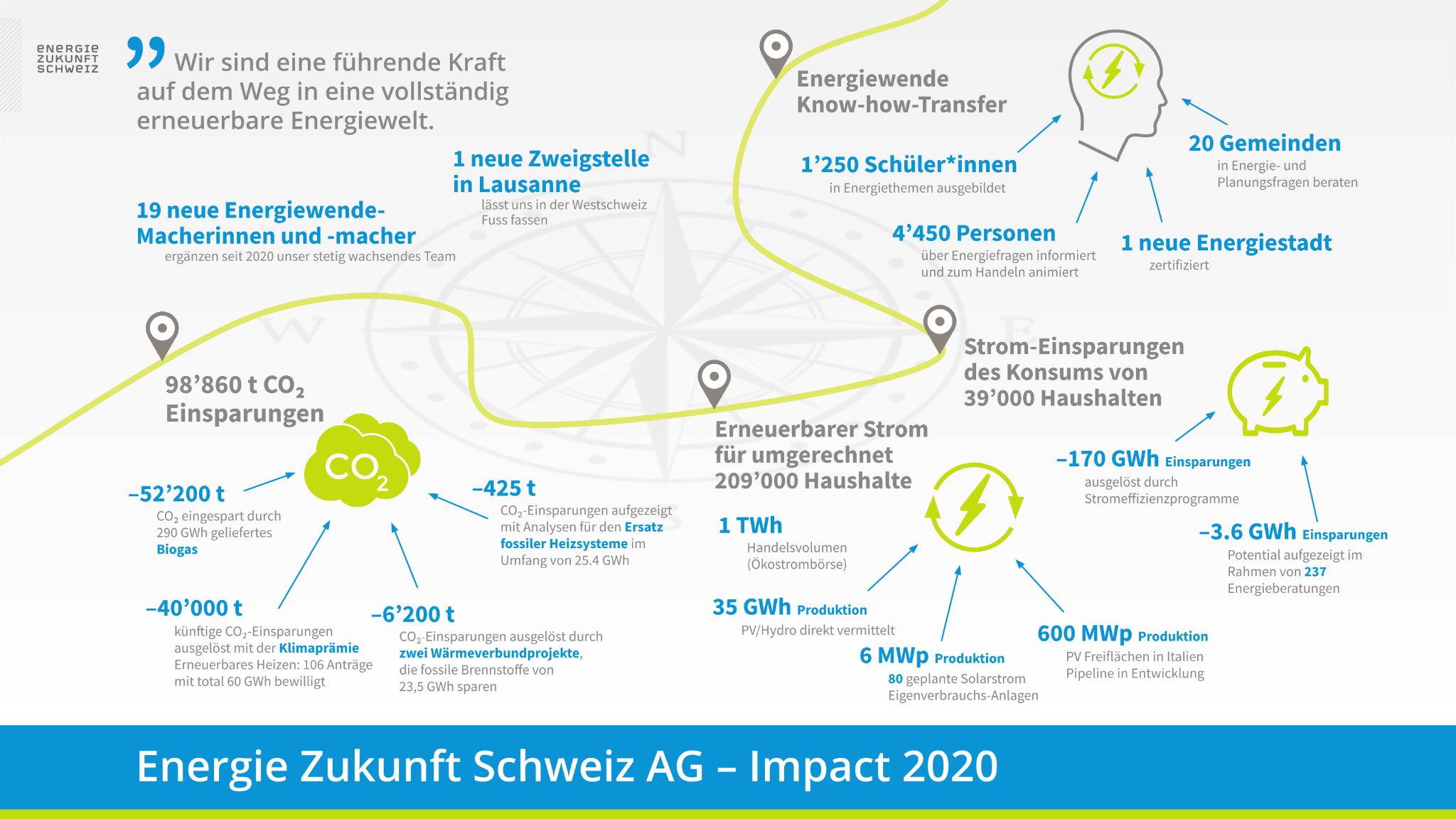 Das vergangene Jahr war für alle mit unerwarteten Herausforderungen verbunden. Es ist umso erfreulicher, dass die Energiewende trotz dieser schwierigen Umstände weiter an Fahrt aufgenommen hat. Und auch für die Energie Zukunft Schweiz AG (EZS) brachte das Jahr 2020 positive Veränderungen und Weiterentwicklungen.
